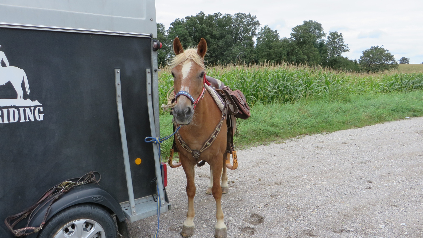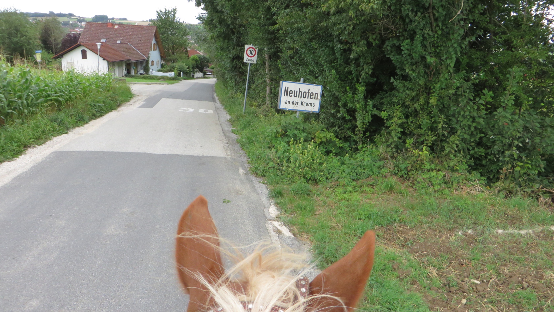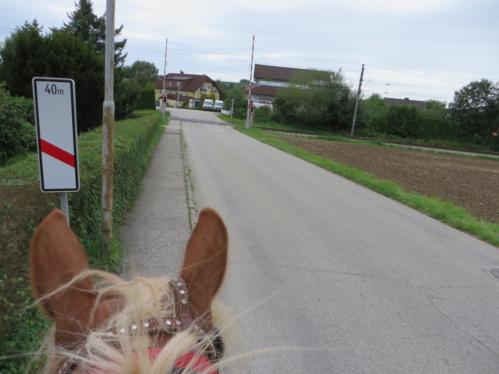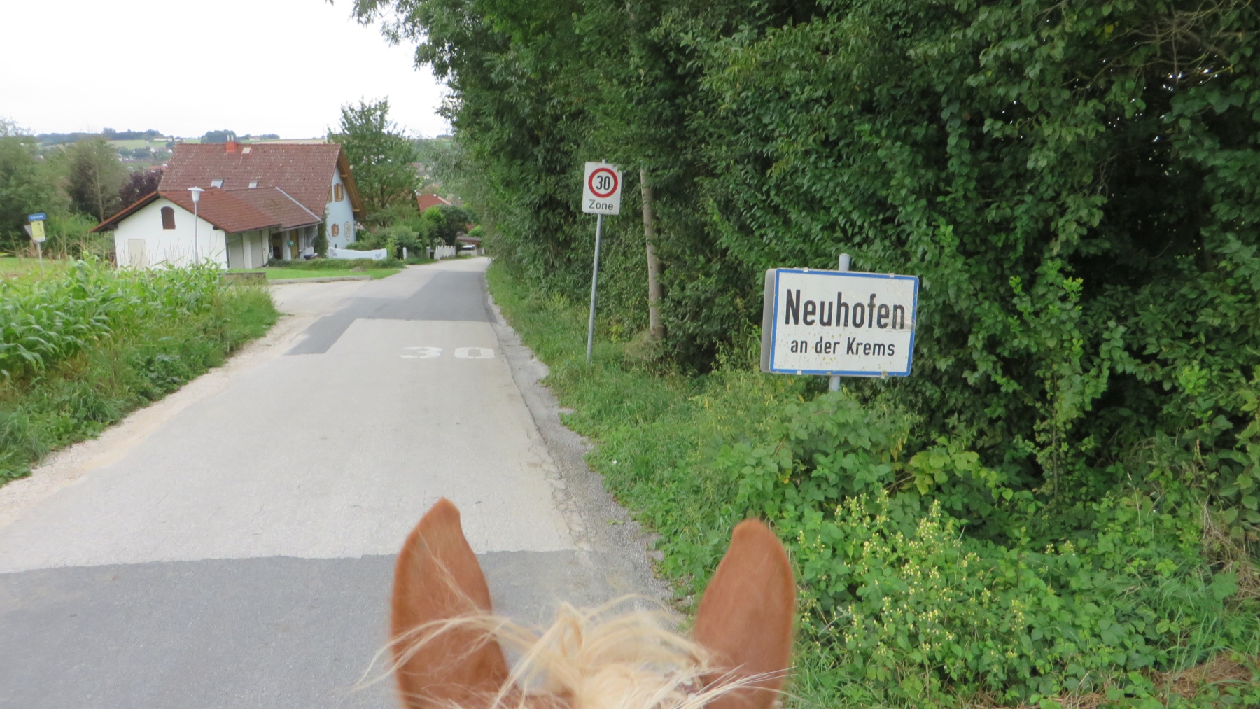 Meine Schwester und ich fuhren mit unseren Pferden zu dem Parkplatz bei der Diskothek Spessart in Neuhofen/Krems. Von dort sattelten wir unsere Pferde und ritten Richtung Ort um entlang der Krems Richtung Nöstlbach zu kommen. Dabei mussten wir einen Bahnübergang queren was unsere Pferde super meisterten. Durch den Kremsfluss konnten wir diesesmal nicht reiten da dieser leider Hochwasser führte. Von Nöstlbach ging es zu uns in den Garten wo wir und unsere Pferde Pause machten. Dann auf nach St. Marien um von dort wieder zu unseren Fahrzeugen… Gesamtstrecke so ca. 16km mit schönen Galoppstrecken