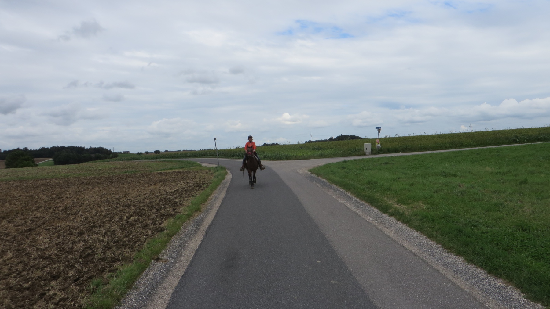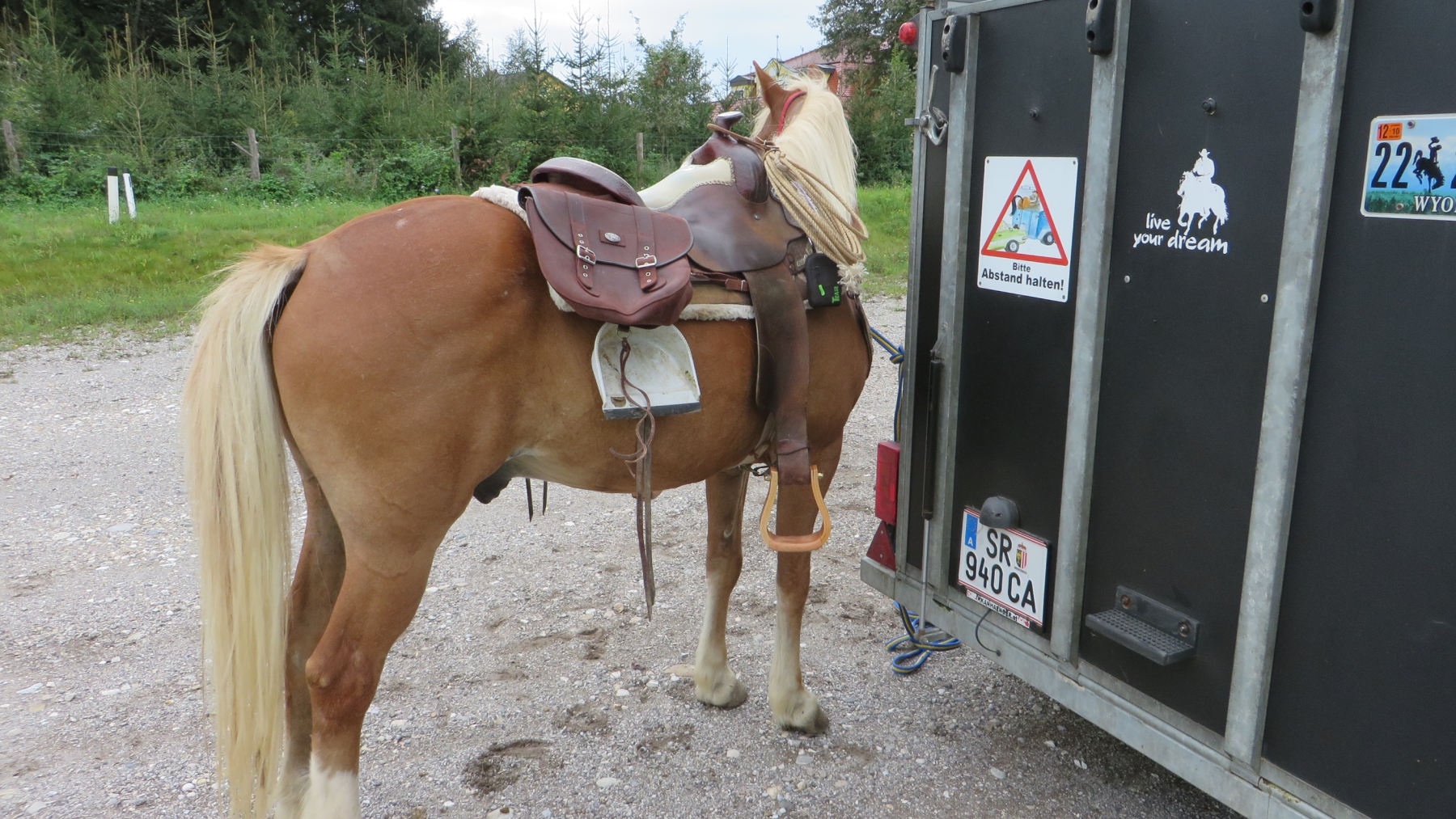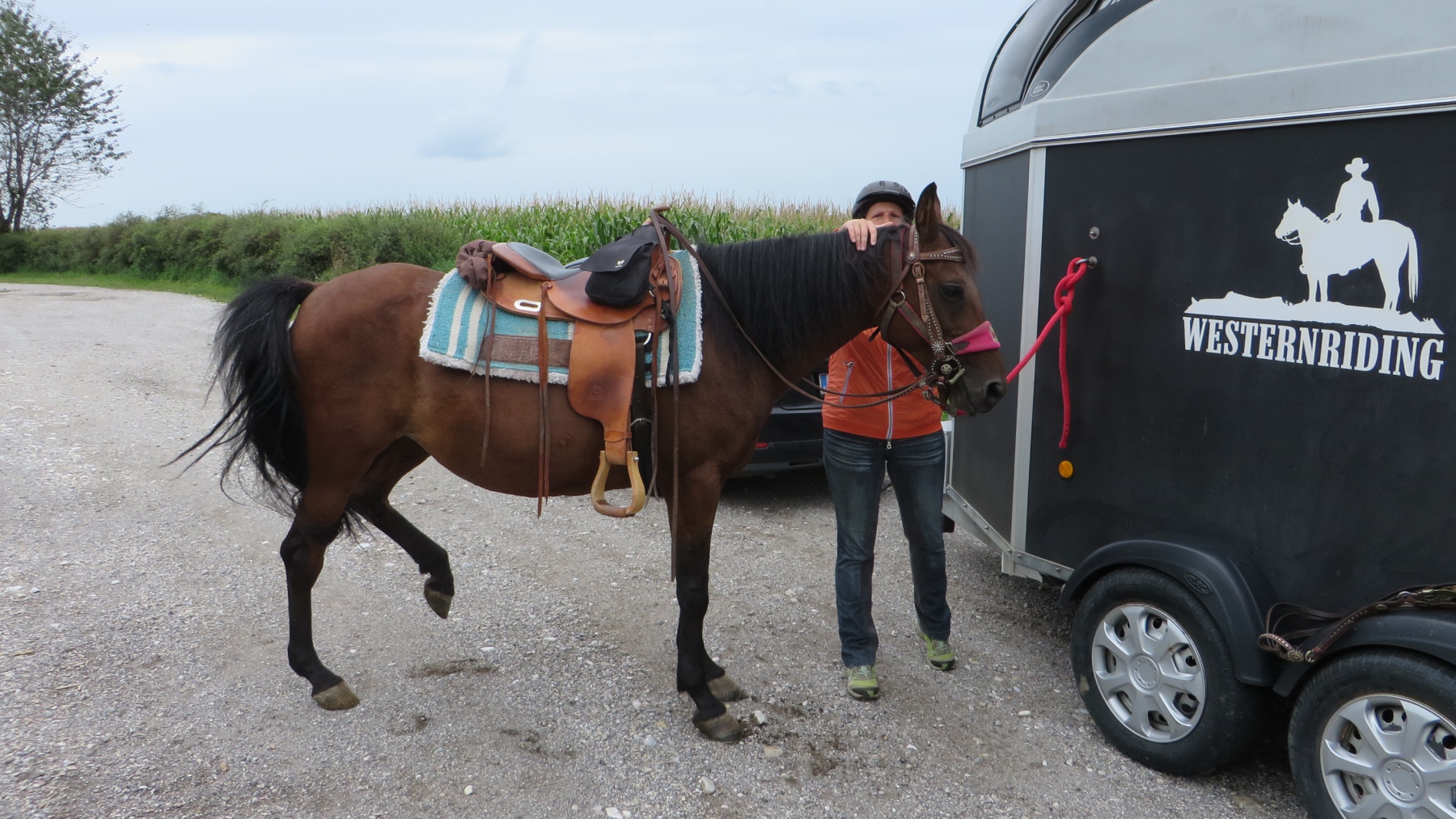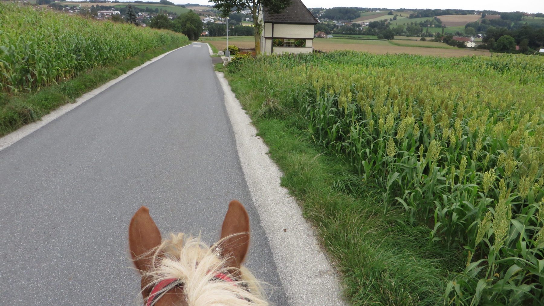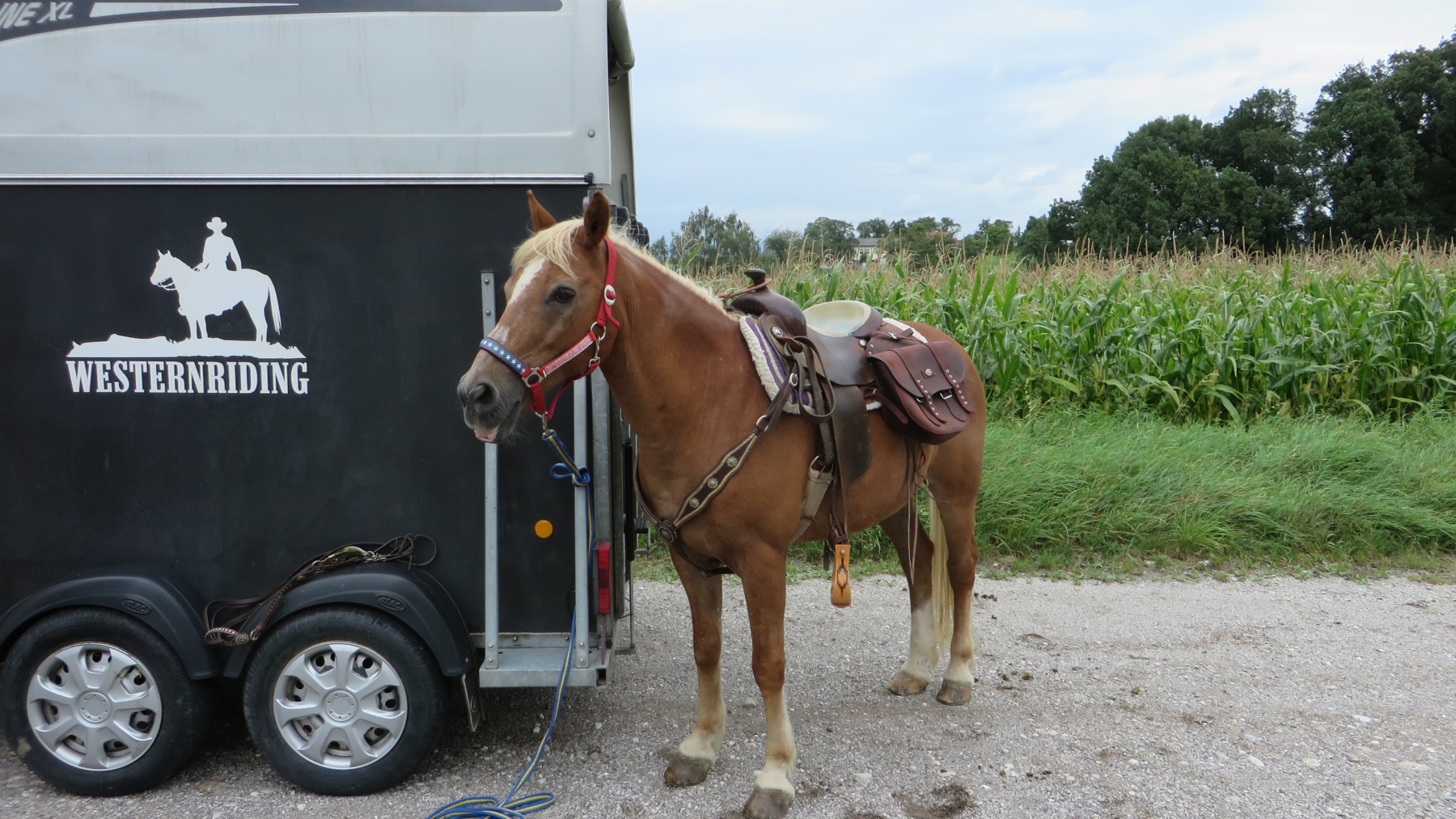 Meine Schwester und ich fuhren mit unseren Pferden zu dem Parkplatz bei der Diskothek Spessart in Neuhofen/Krems. Von dort sattelten wir unsere Pferde und ritten Richtung Ort um entlang der Krems Richtung Nöstlbach zu kommen. Dabei mussten wir einen Bahnübergang queren was unsere Pferde super meisterten. Durch den Kremsfluss konnten wir diesesmal nicht reiten da dieser leider Hochwasser führte. Von Nöstlbach ging es zu uns in den Garten wo wir und unsere Pferde Pause machten. Dann auf nach St. Marien um von dort wieder zu unseren Fahrzeugen… Gesamtstrecke so ca. 16km mit schönen Galoppstrecken