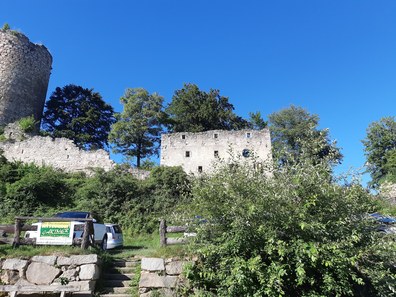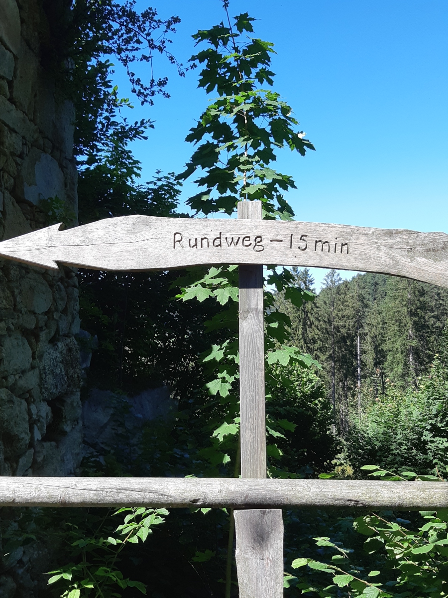 Auf diesem Rundweg zeigt sich das Mühlviertel von seiner besten Seite. In der hügeligen Landschaft wechseln sich Blumenwiesen, Felder, Obstgärten und Wälder ab . Vorbei an außergewöhnlichen Höfen, Bächen, Findlingen und einer mystischen Kultstätte zu einer mittelalterlichen Burgruine. Wir folgen dem Wegweiser auf dem Weg Nr. 80 bis zu einer Weggabelung und bleiben rechts Richtung Stoaninger Alm. Vorbei an einem alten dem Verfall preisgegebenen (Mühl-) Gebäude bringen wir bald die ersten Höhenmeter in kühler Morgenluft hinter uns. Bei der Sommerrodelbahn angekommen gehen wir entlang der Lifttrasse bis uns ein Schild den Weg links in den Wald weist. Noch ein paar Höhenmeter im Forst und über Lichtungen und der höchste Punkt des Tages ist erreicht. Der Herrgottsitz. Ein drahtseilversicherter Miniklettersteig führt zum Gipfelkreuz. Ein Hit für Kinder, kindische Gemüter und all jene, die sowieso nichts auslassen. Wer nicht will kann es sich ja inzwischen auf der Bank unter dem Felsen gemütlich machen. Kinoliebhaber werden an diesem Ort zweifellos sofort an schaurige Opferrituale und dergleichen denken. Der Weg führt jetzt stets leicht bergab bis nach Kollnedt. Bei einem Bildstock links, bald wieder leicht bergauf, im Wald um den Hügel herum bis zur Ruine. Diese ist recht weitläufig und inklusive Bergfried frei begehbar. Wer auch noch in der unter der Burg gelegenen Taverne einkehren möchte sollte genug Zeit einplanen. Auf dem Weg 81 zügig bergab und dann über Hügel geht es zurück nach Schönau. |