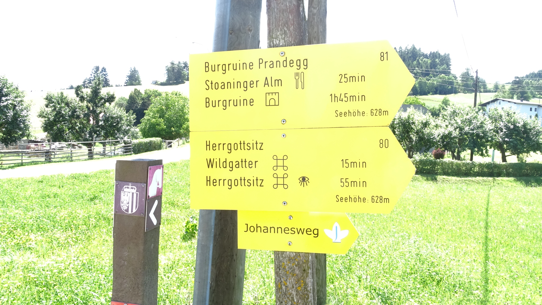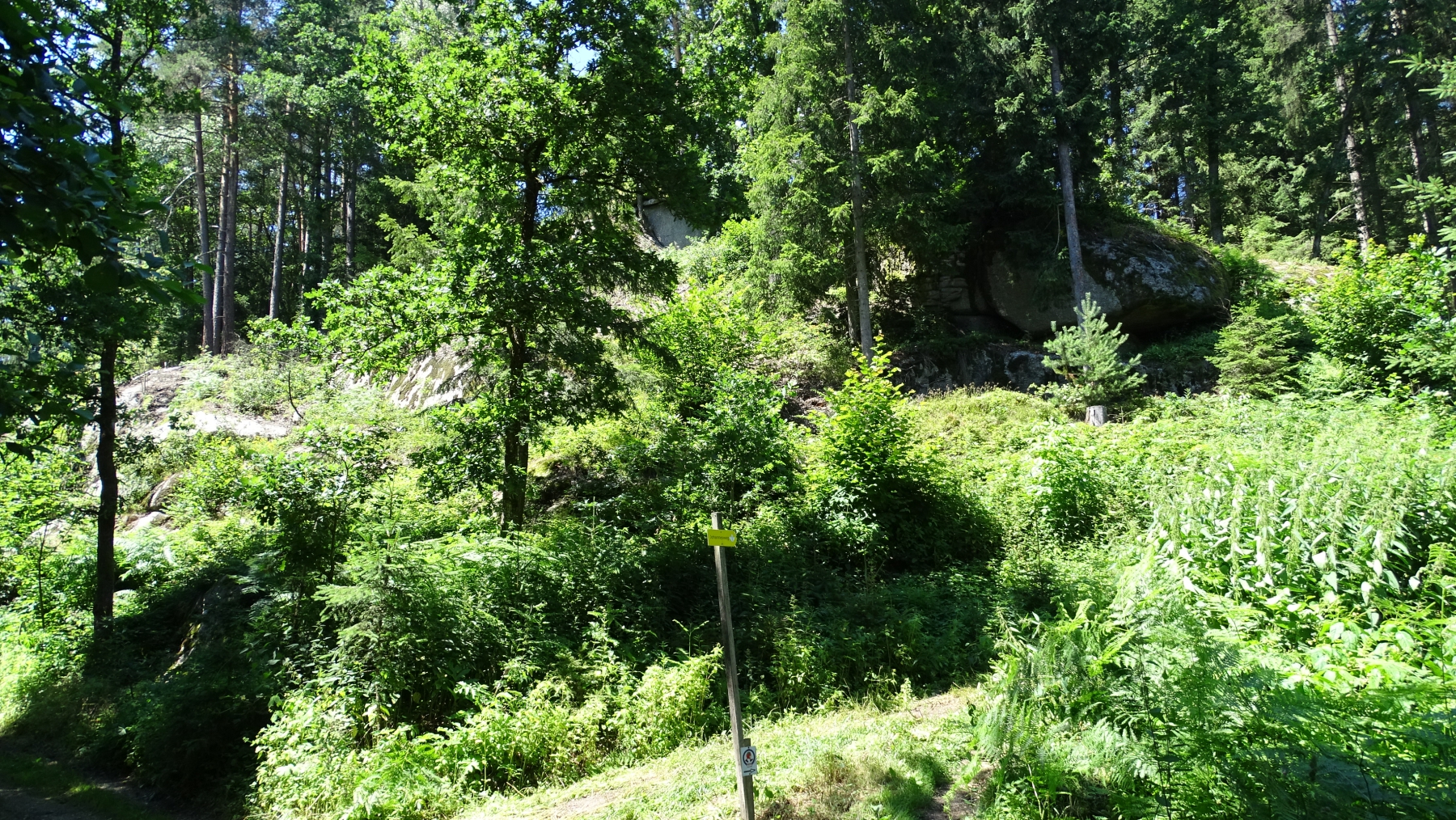 Auf diesem Rundweg zeigt sich das Mühlviertel von seiner besten Seite. In der hügeligen Landschaft wechseln sich Blumenwiesen, Felder, Obstgärten und Wälder ab . Vorbei an außergewöhnlichen Höfen, Bächen, Findlingen und einer mystischen Kultstätte zu einer mittelalterlichen Burgruine. Wir folgen dem Wegweiser auf dem Weg Nr. 80 bis zu einer Weggabelung und bleiben rechts Richtung Stoaninger Alm. Vorbei an einem alten dem Verfall preisgegebenen (Mühl-) Gebäude bringen wir bald die ersten Höhenmeter in kühler Morgenluft hinter uns. Bei der Sommerrodelbahn angekommen gehen wir entlang der Lifttrasse bis uns ein Schild den Weg links in den Wald weist. Noch ein paar Höhenmeter im Forst und über Lichtungen und der höchste Punkt des Tages ist erreicht. Der Herrgottsitz. Ein drahtseilversicherter Miniklettersteig führt zum Gipfelkreuz. Ein Hit für Kinder, kindische Gemüter und all jene, die sowieso nichts auslassen. Wer nicht will kann es sich ja inzwischen auf der Bank unter dem Felsen gemütlich machen. Kinoliebhaber werden an diesem Ort zweifellos sofort an schaurige Opferrituale und dergleichen denken. Der Weg führt jetzt stets leicht bergab bis nach Kollnedt. Bei einem Bildstock links, bald wieder leicht bergauf, im Wald um den Hügel herum bis zur Ruine. Diese ist recht weitläufig und inklusive Bergfried frei begehbar. Wer auch noch in der unter der Burg gelegenen Taverne einkehren möchte sollte genug Zeit einplanen. Auf dem Weg 81 zügig bergab und dann über Hügel geht es zurück nach Schönau. |